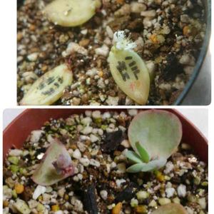 他の多肉ちゃんに貝殻虫が、相次いで見つかって…😢 駆除してたら鉢受けのとこで、朧月が芽吹いて発根までしていました✨😍⤴⤴ 凄い生命力✨😍✨ 気付けて良かった💕