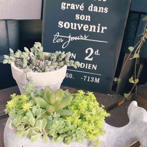 おはようございます(*Ü*)ノ"☀ 今日も暑くなりそうですね🔆🔅 週末、ちまちま多肉寄せ植えをしました。 多肉の寄せ植え、難しい( ˊᵕˋ ;)💦 もう少し後ろのサボテンの位置を高くすれば良かったな。