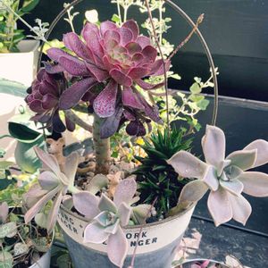 こんばんは🌙 家にひとりぼっちでいた黒法師と頂き物の多肉さんでとりあえず寄せ植えを作りました。黒法師以外の名前は分かりません。 いつか、GSのみなさんのようなモリモリ寄せ植えを作ってみたいです🌵