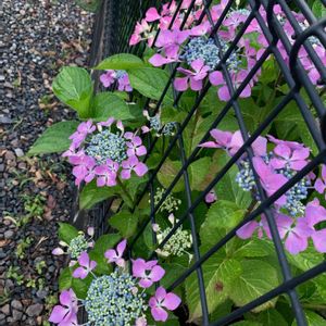 こんばんは🌙毎日恒例帰宅後パトロール。 雨を喜んで紫陽花がフェンスから飛び出してます♪