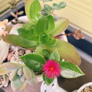 いただき多肉の寄せ植えに花が咲いてます🌸 GSの方に名前を教えていただいたので、さらに愛着が湧きました♪