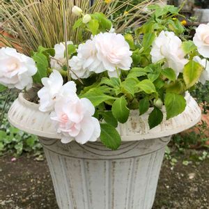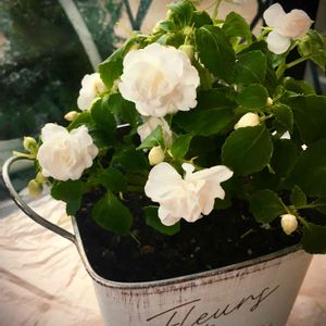 八重咲きインパチェンスシルエットブロッサム、日陰okとはいえ梅雨時も健気に咲いていたけれど、やっぱり太陽光にはご機嫌になります😃❣️ 説明書によると、 科属名】ツリフネソウ科 【日 照】日向~半日陰 【原産地】南アフリカ原産 <インパチェンスの育て方> 花期 4月~11月下旬 草丈 20~30cm 日当たり 1日に2~3時間朝日の当たる涼しい場所が理想的。高温には強いが蒸れに弱く、夏場は涼しく風通しの良い半日陰を好む。強い西日の直射は厳禁。春・秋・冬は日向に置く。 越冬 冬場は室内の日当たりの良い場所で、10℃以下にならないように注意。(15~30度に管理。) 土壌 酸性土壌を好む 水やり 水が大好き。切らさないように注意。但し、用土の加湿は厳禁。夏場等、葉がしおれた時は葉水。但し、通常は葉に水が掛からない方が無難。 施肥 元肥はしっかり。追肥は緩効性化成肥料(少量)を月に1~2回 花殻 コマメに摘むと花が沢山付く。雨に叩かれて腐った花は取る。 整枝 伸びすぎた枝は切り戻して、化成肥料を与える。 病虫害 ウドンコ病、アブラムシ、ナメクジ等の病虫害に注意。 注意 日光が不足したり、大雨・長雨に当てたり、強い午後の日差しに当てると蕾や葉が落ちる。猛暑の時期は花を休む植物なので無理をさせない。
