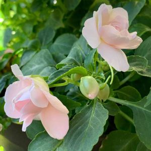 八重咲きのインパチェンス、モリモリしてきました♪淡い色が、可愛いのです♡ 玄関の主役に抜擢するから、長く咲いてね😊