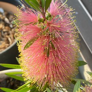 ブラシの木(カリステモン)💕 やっと咲いて来た〜💖💖💖 真っ赤よりはピンク系 名前は分かりません💦💦💦