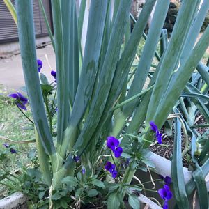 長ネギ🌿の株元にビオラ?が出てきまして コレは一昨年にDAISOのビオラを種まきした物の残りの種が発芽🌱した物かと 野菜とお花の混植栽培でしたー👏