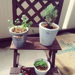 ガジュマル親子とバジル 植え付けしました🌱 ちょっとしか発根しませんでしたが、1ヶ月辛抱したので植え付けちゃいました うまく根付きますように😊❤️