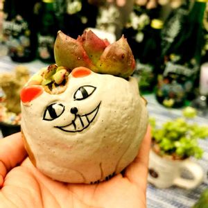 創作植木鉢 溟海 粘土で作りました。 タコの植木鉢です。 美空の鉾、グリーンネックレス、桜竜など海藻を思わせる『海っぽい』多肉植物を植えました。 デザインコンセプトは部屋に置ける海。 鉢がメインではなく、植物を引き立てる舞台装置としての植木鉢をこれからも作っていきたいと思いますのでよろしくお願いします。