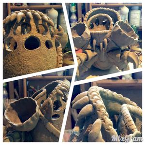 成形終了⇒乾燥中 いろいろな多肉と出逢い、これまで創って来たモノを見返して、植物を活かす事も考慮した結果、現時点ではこの形が一つの答えに成りました。これから素焼・彩色-釉掛け・本焼きと先は長いですが、段々化けて行きます。