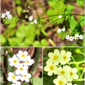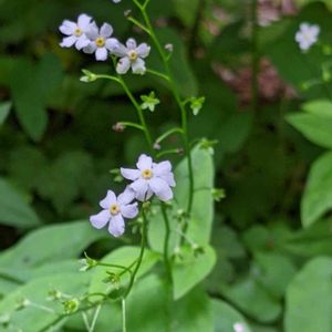 タチカメバソウ(立亀葉草) *ムラサキ科キュウリグサ属 花期は5〜6月 北海道西南部〜本州の山地の渓流沿いや木陰などの湿った場所に生育する。 茎の先に白〜淡青紫色の花をまばらに付ける。 先が尖る葉は互生! 茎が立ち上がり、この葉が亀の甲羅を思わせる事からこの名前が付けられた! 大好きな花を今年はいつもと違う場所で見てきました❣️ 5月5日撮影