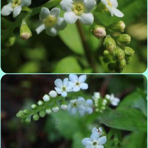 この花は初見でした👀 でもすごく見たことがある感がいっぱい😆 よく見ると花の中心に黄色い付属体がある、ムラサキ科だよなぁ⁉️ 花序の伸び方もサソリ花序が伸びきったような姿に見えるし… 最初は真剣に、シンワスレナグサのシロバナかと思ったけど、全体のイメージに違和感が😅 て、判りました。 ワスレナグサ属ではないけど同じムラサキ科のキュウリグサ属の、タチカメバソウでした。なぜ亀葉❓と思ったけど、亀の尻尾状の切れ込み(アカソみたいな)の意味ではなく、全体に丸くて亀の甲羅状(亀甲)ということからみたいです。