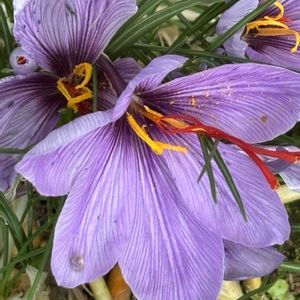 サフラン 今年も京成バラ園で出会いました。昨年より早かったせいか、二箇所の群生でした。 透けた紫色の花びらに赤く長い蕊が印象的💜♥️