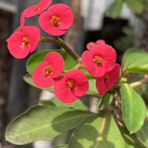 ハナキリン(花麒麟) 京成バラ園の温室 5年間を同じ所同じ花を追ってみました。 今年秋バラを見に行ったのにハナキリン撮り忘れました😅 携帯機種変更による写りの違いもわかりますね 1️⃣2025.5.18 2️⃣2024.10.22 3️⃣2024.5.29 4️⃣2022.11.12 5️⃣2021.11.16