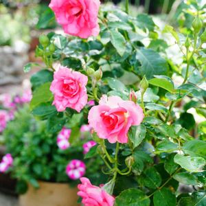 おはようございます☀ 今日も暑くなりそう💦 今朝の薔薇🌹 コラージュにしました💕 左上 アンブリッジローズ 右上 プシュケ 中 ルシエルブルー 右下 ヘレン 左下 ケルビーノ 上のアプリコットのふたつは半日陰の裏庭に植えていますが、ゆっくり綺麗に咲いてくれました✨✨✨ ルシエルブルーさんは昨年夏にお迎えしてすぐに地植えにした子ですが、よく咲いてくれています💕ただそんなに大きくならないみたいなのでPot向きかもしれないですね✨ 左下のケルビーノくんは鉢植えにしてましたが、新しい花壇に移植しました。結構な横張りタイプ!お隣のクィーンオブスェーデンさまとは対照的な樹形です😆✨ 右下のヘレンさま💕花壇でERクレアオースチンの隣に植える子を探していて、なかなか決まらずはなはなショップさんに電話相談したところ、自然な扇形樹形になり花壇に向いていると勧められた薔薇です✨なんだか乙女チックなお花が咲き出しました💖