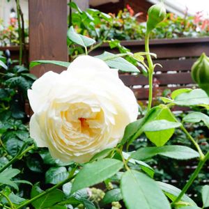 花壇の特等席に地植えしたけれど何となく調子が悪かったイングリッシュローズ クレアオースチン✨ ここに来てようやく蕾が膨らんできました🥰 ちゃんと根付いたみたいでよかったわ✨✨✨ 葉っぱ🌿が明るい緑で綺麗です💕
