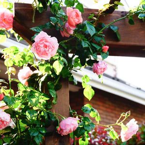 今日は一日中雨かしら☔️ 止む気配はありません よりによってこんな雨の日に初めてお顔を見せてくれたダマスクローズのイスパハン💕 花名はイラン最大の観光地で世界遺産にも登録されていた美しい古都にちなむそうです✨ 柔らかなピンク色が優しげな薔薇✨ お隣に植えたクレマチス流星も負けじと蔓をパーゴラの上まで伸ばしています✨💓✨