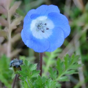 〜ネモフィラ〜 ムラサキ科ネモフィラ属 🏷️美しく青きドヨウ 🏷️2021年同期の会 【花言葉】 清々しい心・可憐 植えたばかりのネモフィラのお花 見つけましたよ。.:*♡ 日出町おおがファーム