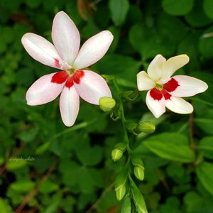 双子ちゃん みっけ🩷🩷 6月20日、7月29日生まれの方の誕生花だそーです😀 花言葉は、歓喜、青春の喜び、楽しい思い出などで その由来は 細長い花茎を伸ばした先に咲く、春を謳歌しているように見える愛らしい花の姿から生まれた言葉だそうです🩷 別名:アノマテカ、ラペイルージア