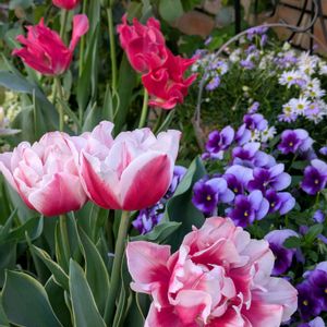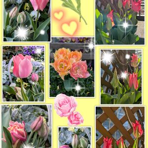 こんばんわ〜🌛✨ 今日はpwさんと サントリーさんの 待機苗の植え替え作業とピンチ✂に追われた一日でした😉😅 中腰にて長時間^^; 腰が痛いッ🥺 こちらの画像は只今我が家のチューリップ達… コラージュにてまとめてみました(^^) チューリップ達も日々変化を… まだ蕾中のチューリップも… 暫くチューリップに癒やされそう〜です🌷🌷🌷😍🥰