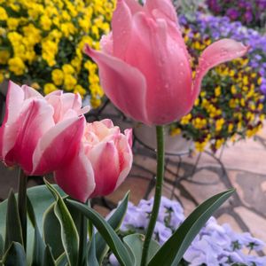 こんばんわ〜🌛✨ 秋植え球根のチューリップが絶賛開花中〜😉☺️🌷💞 この所チョッピリ寒さが続きチューリップ🌷が長持ちを… チューリップのある風景に癒やされます🤗🥰💗