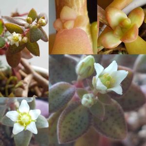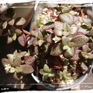 クラッスラ属 ボルケンシー 渋い葉っぱに白い花が可愛い😊 今年3月に びーばーさんからいただいた子ですが、 びっくりするくらいモリモリ増えてます✨ 元気元気🤗🎶