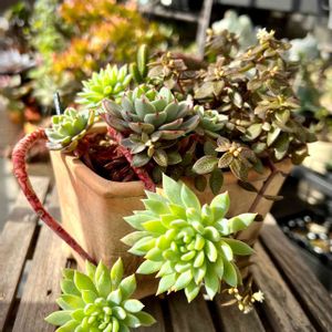 適当な寄せ集め植え( ̄▽ ̄;)💦 昨年植えたもの・・・・ 少し色がついてきた💜かな?😅 今、多肉はとにかくまとめ植え?寄せ集め植えにし始めてます(^o^;)‼️ そうしておかないと、冬越しが大変なことに〰️鉢数をとにかく減らす❗が今の仕事です😅 隙間に突っ込む、気にせず突っ込む😂 種類関係無く突っ込む😱💦 いいんだろうかf(^_^;! これみたら大丈夫そうな気がしてきた(≧▽≦)✌️