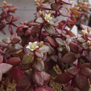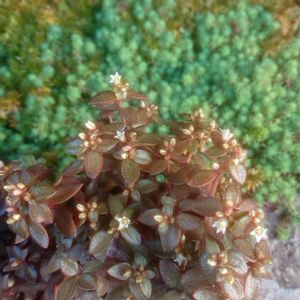 紅葉したボルケンシー 花が咲きました。 白くて小さなお花です。