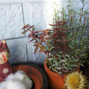 おはようございます🍄 今日も晴れ☀️ セダムロッティ🌱ぷくぷくお肌少しピンクになって可愛い(*´﹀`*) クラッスラのボルケンシー🌱は紅葉始まり小さなお花が咲いてまーす😳 スカスカだったのに賑やかになってきました〰️♡♡♡