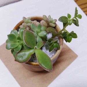 湯のみに多肉を 部屋の中でさっぱりと寄せる こういう寄せ植えもありだと思います