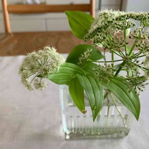 最近アズキ菜の葉がお気に入りです。 合わせやすく涼しげで持ちがいい。
