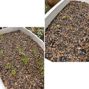 【1枚目】種まき11日目になる空芯菜は双葉が展開して、早いものでは本葉も見えてきました。双葉がチョキ✌️の形なの、可愛い🤭 ちょっと偏っちゃったから多いところから移そうかなと思って直根性かどうか調べたら、空芯菜ってヒルガオ科なんですってね。知らなかったわー😳 植え替えはそーっとやれば大丈夫のようです。そもそも強いからね👍 たくさん発芽したから植え広げる手もありますが、そんなにたくさんあっても食べ飽きるから間引きしようかな😗 【2枚目】こぼれ種を拾った葉牡丹はそこそこ成長しています。 昨日、2cmくらいに成長した青虫を見つけて捕殺しました。危ない危ない💦 昨年のこぼれ種は7月24日には虫に食われ茎だけになって終了しましたが、今年はどうなることやら?🙄 【3枚目】6月26日に葉牡丹リースから救出した葉牡丹は現在こんな感じ。虫に食われてますね💦 どちらの葉牡丹もオルトランDX粒剤はたっぷり蒔いたけどそれだけじゃおそらく間に合わないので、薬剤スプレーも併用するべきなんですがサボってまーす😅 【4枚目】7月7日に種まきした矮性カンナ・サウスパシフィックローズは現在こんな感じ。結構のんびりさん? 9月後半くらいから咲いてくれるかなと思って蒔いてみたけど、ちょっと難しいかもしれません。まぁ咲かなかったら来年に繰り越しで。 【5枚目】7月7日に投稿したミニバラ・グリーンアイスは現在ほぼグリーンになり、背景と同化しつつあります🤭 ちょっとずつ咲き続けていたので枯れたら花首だけカットしていましたが、そろそろ咲き終わりっぽいのでまとめて剪定しちゃおうかな✂️ 今日も暑いですねー🥵 そろそろ葉牡丹の種まき準備しなくちゃですが、こんな暑い中に大丈夫かしら?🤔