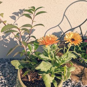 お引越し予定のあったなんかの苗木… カレンデュラと寄植えに。 うん、この方がかわいい❤️ 水をあげたので西側でギリギリまで太陽を浴びてもらおう💦