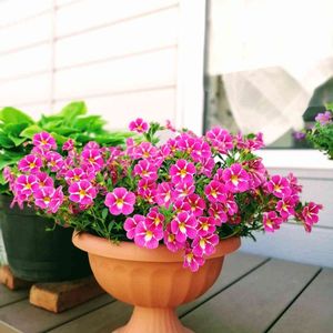 左 ガソリンスタンドで4月に頂いた カリブラコア 右 プレゼント企画で頂いた PWスーパーベル🌸切り戻し+挿し芽で 少しずつ花数を増やしています 他の2種も奮闘中😊