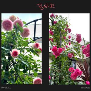 🌹ピエールさん💕一年待ちました🎵やっと咲いた✨嬉しい❀.(*´▽`*)❀. マリエさんも可愛く咲いてます❣️ありがとう♡︎ʾʾ