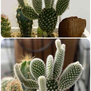 こんばんは❄️ 半年前に頂いた🌵🤗 最初、にょき‼︎って🌱出た時は感動した✨生きてる⤴️❤️伸びたところが、しっぽの様で可愛いょ♡︎ʾʾ 植替え、いつしたらいいんだろ〜 めっちゃ狭い中にいるのよねー😅 🌵は初めてだから…😆