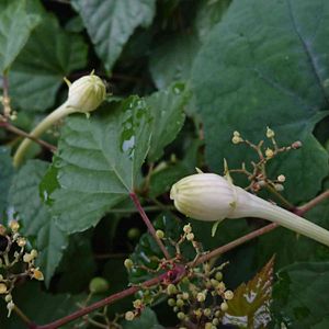 雨の合間に🌂持って散歩😊 レースのような美しい花は、夜しか観られないのね😂 🥀 カラスウリ (小さな実はノブトウ) 🏷️金曜日の蕾たちに 参加しま~す。🙏