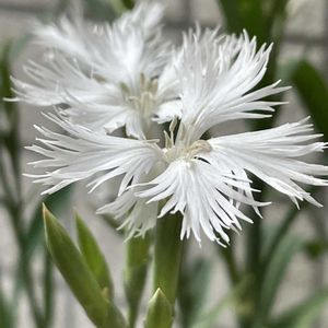 こんにちは😃☀️ 今日はもう1枚、 カワラナデシコ(白花) [河原撫子]です🥰👍 ◎ 白花 河原ナデシコ (ダイアンサス ミーティア) 暖 地 昼過ぎから半日陰が理想 耐乾性 普 剪 定 伸びすぎた時、花後に2,3節残して 切り戻すと姿が整い、繰り返し咲く 増 殖 株分け 実生 もっと白いのですが、光の具合でこのような色合いになりました。 ☆〜(ゝ。∂)💛🤍💚 枯れた葉っぱを切り取り、綺麗に植木鉢の河原ナデシコを剪定して様子を見ていましたよ。♪(๑ᴖ◡ᴖ๑)♪🌿🌿🌿 🏷 白い水曜日♡ 今日も午後からも穏やかに過ごせますように。 ☆*:.。. o(≧▽≦)o .。.:*☆♡💛💚💛🤍💚💛💚💛🤍💚🧡