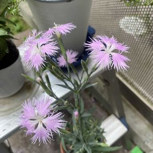💐河原ナデシコ ミーティアローズピンク 夏に咲く子だとは知らずに 寒い玄関に飾ってしまった〜(*ꆤ.̫ꆤ*)ゴメン💦 でもナデシコさんは、この寒いなか3週間も 次々と開花して楽しませてくれました( *´艸`)🩷