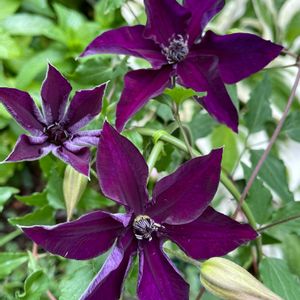 自宅の庭に咲いた花 クレマチス ソワレ 深い赤紫色とベルベットのような質感がとても上品です。