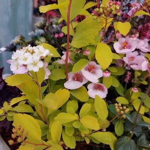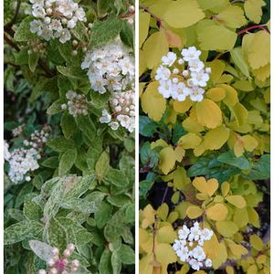 コデマリ ゴールドファウンテンが満開です。 ライムカラーの葉が特徴ですが、一般的な葉色の葉も混ざってるんです🌿