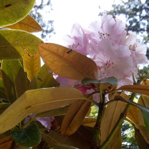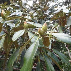 ニホンシャクナゲで合っているでしょうか? ホンシャクナケかも? 歯の裏が茶色くてうっすらとうぶ毛が生えている気がしました。 それと葉の縁が心なし裏に巻く感じですね。 でも以前見たニホンシャクナゲよりも葉裏の茶色が薄いのと産毛も少ない感じなんです。 もしかしたら和洋の交雑種ですかねえ? 3月2日 場所:豊川市 財賀寺 観音堂境内