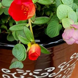 モミジの鉢に雪の下 半日蔭が好きで、いつの間にか 毎年、咲いてくれる🌿 昨日、葉っぱを天ぷらにすれば良かった…