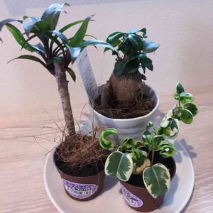 ガジュマル、ドラセナ、ベンジャミン のミニミニサイズ買ってみた😊 ガジュマル、色んな太さと形の幹があって、無難なこの子に😌 どんな感じに育つかなぁ❓