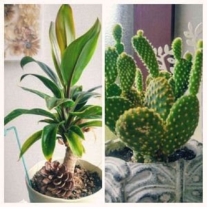家のかわいいミニ🌴🌵 左は1月に仲間入りの《コルジリネパープルコンパクタ》:2倍位に成長✨ 右は4月に娘におねだりした《金烏帽子》:子供がぴょこピョコピョ育ってます💦🤗