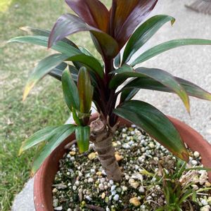 これ、みなコーティライン(コルジリネ) 赤ドラセナ(ターミナリスレッドエイジ) 青ドラセナ(シルバーストライプ)という名で売られてる。 ちょっと大鉢の方は元気ないが まぁなんとか生きている😅 下の小さい鉢は 158円シリーズ シルバーストライプと パープルコンパクタ 前回枯らして😭 リベンジ