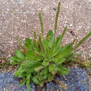オオバコとツボミオオバコ ツボミオオバコが時期が早いのかやたら多く目につく👀 ようやく見つけたオオバコ🌱 ガサガサした感じのツボミオオバコと違って、気のせいか柔らかに見える…見つけてほっとした次第😅 オオバコの葉は全て根生し、長さ4〜15cm、幅3〜8cmの卵形または広卵形、まれに楕円形と変化が多い。 ツボミオオバコは、葉は倒狭卵形で、先は短くとがり、基部はしだいに狭まって柄となり、柄とともに長さ3〜10cm、幅1〜2cm。茎、葉共に全体に白い毛が多く生えている。