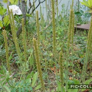 以前投稿したナゾの植物ܾ ܾ 𖥧𓇣𖦥𖥧𖥣 優しいお色のオオバコさんでした😆✨ 雨が降るごとに、みにょんって伸びる。 花壇やプランターのお花さんたちは雨の勢いに負けてヘニャンとなっているのに…😨💧 雑草ちゃん達は大喜びでピシッとまっすぐ立ってるなんて…なんか複雑な気分だけども。 雑草ドライフラワーの材料として抜かずに置いてるところもあるので、この子も仲間入りしてもらいましょう。 このツブツブが落ちて増えるそうなので もちょっと伸ばして早めに摘もう…😓💦