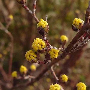 おはようございます。 暖かい日が続いて サンシュユが開花しました。 線香花火みたいになるのは、もう数日かかりそうです。