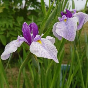 こんばんは。 お庭で咲き出したハナショウブに、雨が降り始めました。 この花は、少し雨混じりのお天気が似合いますね。