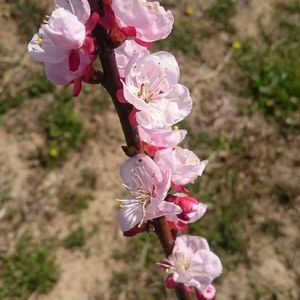 こんばんは。 強い風に煽られながら 春の陽射し浴びて おうちのアンズが 咲いてました(^_^)