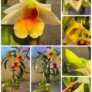 Den.Bella Maree デンドロビウム ベラマリー 2株開花しました😄 別々のお店から購入しました。 よ〜く比べるとオレンジ🧡の入り方とかが、微妙に異なります😊 比べなければ分かりませんが😅 花は長持ちしますね😙